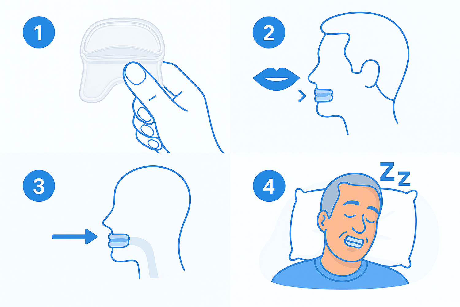 SleepQuiet™ is simple, safe, and designed for comfort. Just a few seconds to set up, and you’ll notice quieter nights almost immediately.